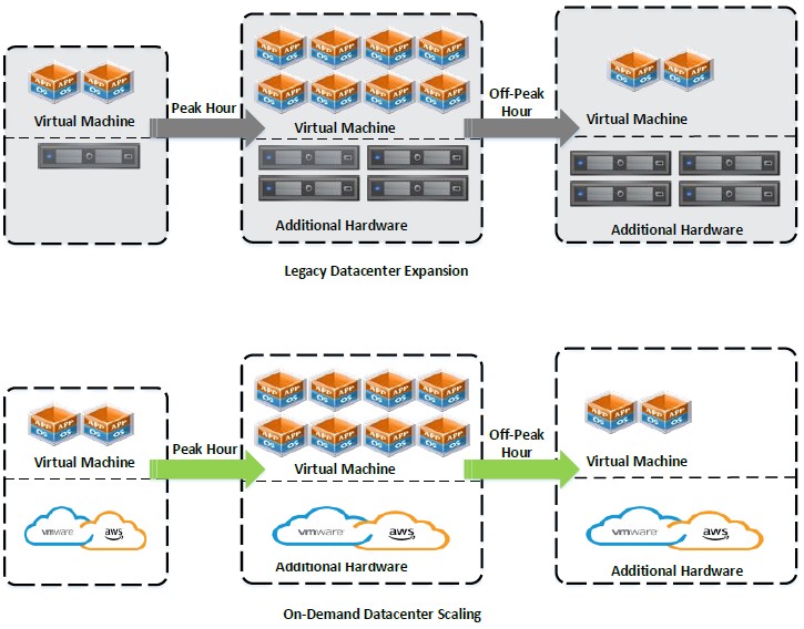Instead of buying an extra storage array or more physical servers, we can work with actuals but not buy that extra “just-in-case capacity.” We can leverage the elasticity of the cloud to spin up ESXi hosts when we need them permanently—or just temporarily until we have purchased that hardware for our data center.